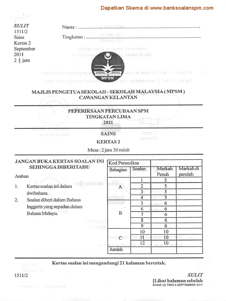 Soalan Sains Kertas 2 Percubaan Spm Kelantan 2011 Pdf