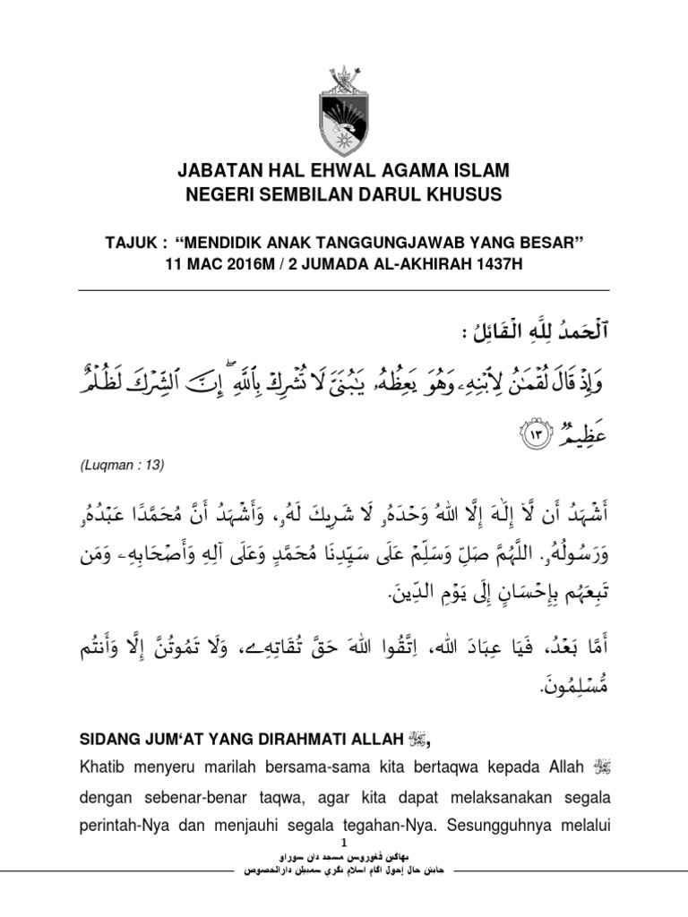 No Title Created Date Download. Sebarang pertanyaan lanjut berkaitan Khutbah Jumaat boleh diajukan ke. Bab inama pendiri dan tempat kedudukan pasal.